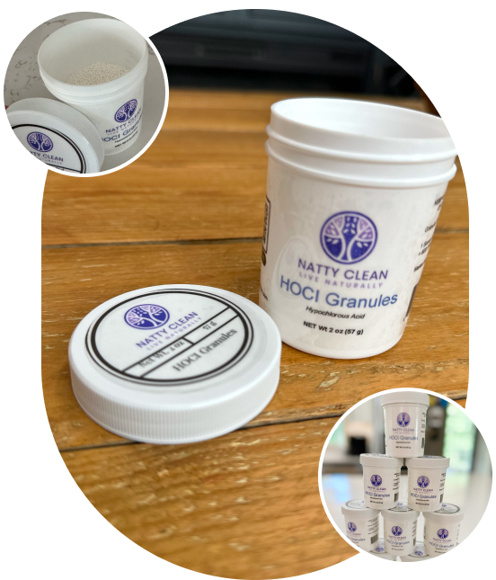 We’ve taken 200-year-old science and made it convenient. Natty Clean Granules let you easily mix HOCl at home with water — creating a disinfectant more affordable and longer-lasting than traditional options.