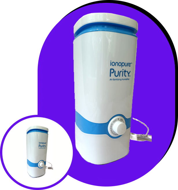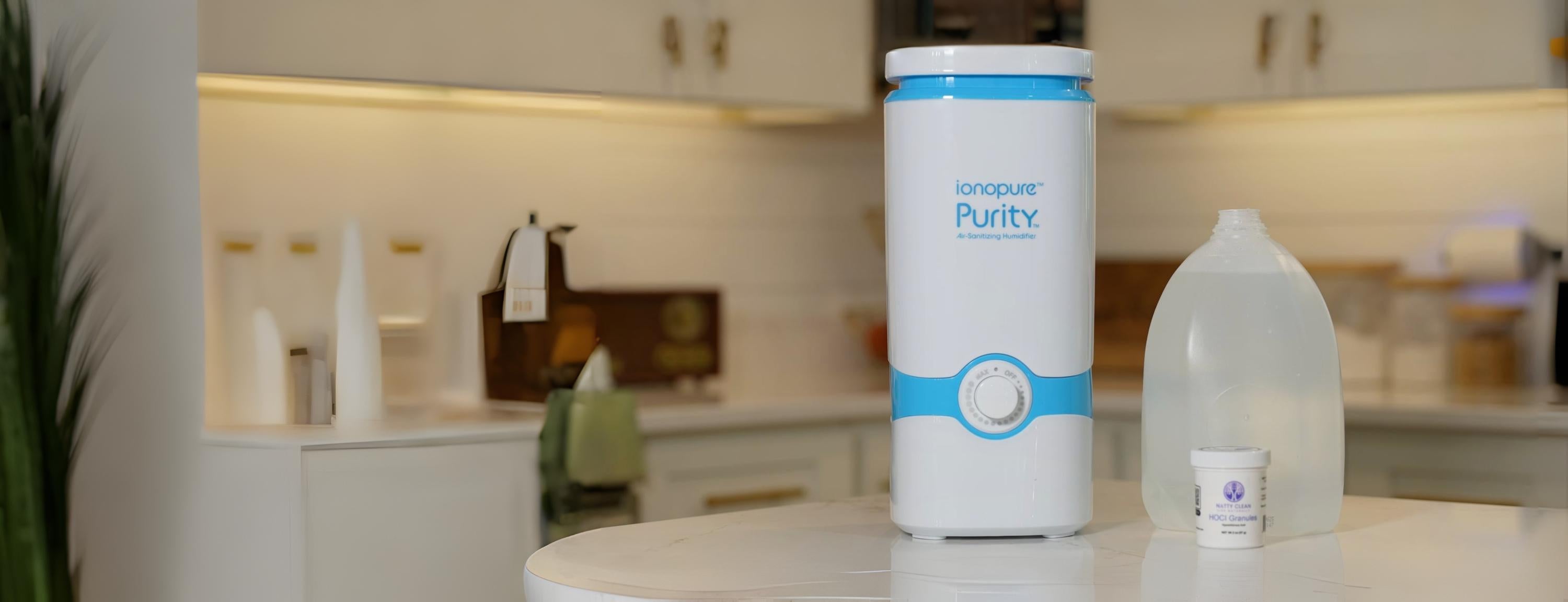 Designed to gently diffuse HOCl into the air. Perfect for homes, gyms, clinics, classrooms, and more. Just add water and granules, turn it on.